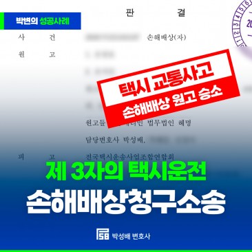 [교통사고 손해배상 원고승소] 택시기사가 아닌 제3자의 운전에 의한 교통사고