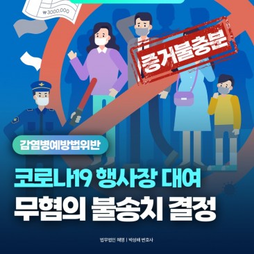 [감염병예방법위반] 코로나19 행사장 대여 증거불충분 무혐의 불송치 결정