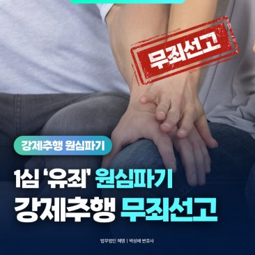 [강제추행] 1심 강제추행 유죄 판결 원심파기 무죄 선고