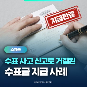 [수표금청구소송] 발행의뢰인의 사고신고로 거절된 수표금 지급 성공 사례
